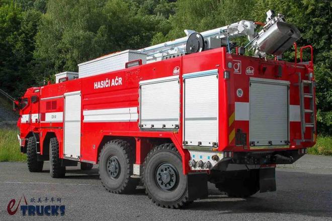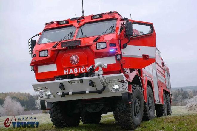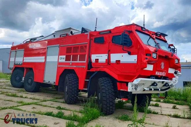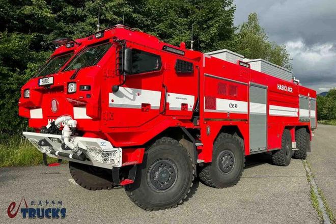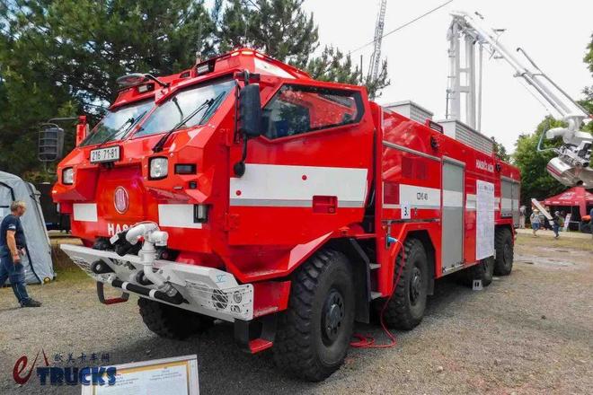 为什么要铺垫这么多背景呢?答案和我们今天文章的主角有关。今天我们文章的主角是一名不折不扣的“重量级选手“,它的型号为:CZVS 40。该车由捷克武装部队、捷克消防部门联合立项,专为远程灭火、保护消防员而打造。该车配备了消防车中罕见的防弹双排座驾驶室,采用8×8全轮驱动、全轮转向,极具看点。话不多说,接下来就让我们进入正题。