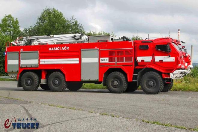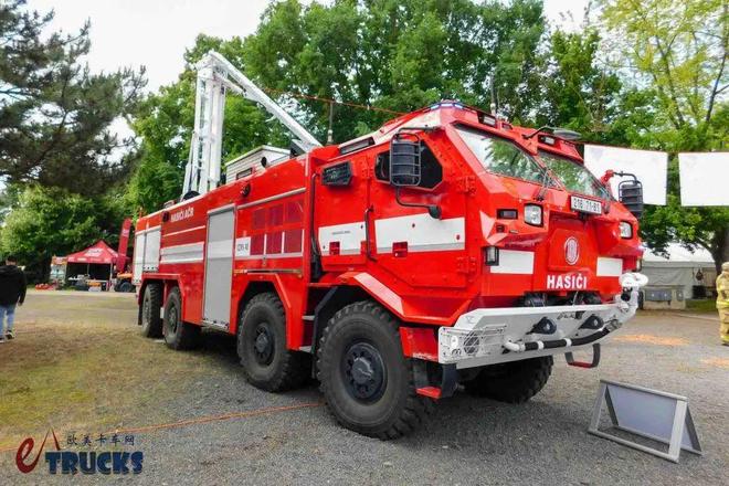 为什么要铺垫这么多背景呢?答案和我们今天文章的主角有关。今天我们文章的主角是一名不折不扣的“重量级选手“,它的型号为:CZVS 40。该车由捷克武装部队、捷克消防部门联合立项,专为远程灭火、保护消防员而打造。该车配备了消防车中罕见的防弹双排座驾驶室,采用8×8全轮驱动、全轮转向,极具看点。话不多说,接下来就让我们进入正题。