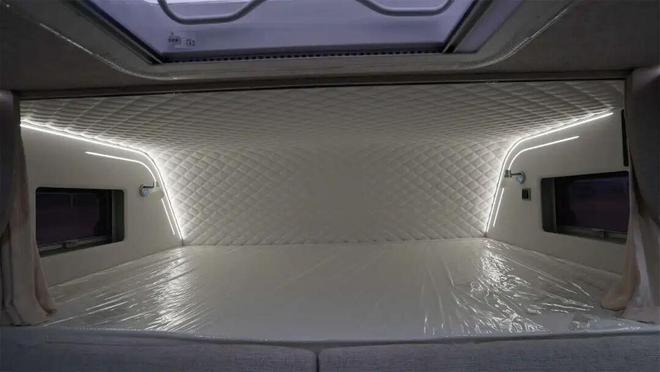 除会客区拼接床外,驾驶室上方设有额头床,空间宽敞,可容纳两名成年人。床铺周边配备阅读灯、储物格及空调出风口,提升睡卧舒适性。部分车型在会客区增设上铺,进一步扩展睡眠空间,满足多人出行需求。