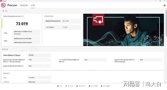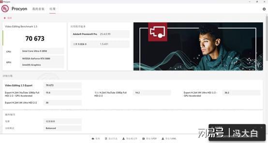 在UL Procyon Premiere Pro 中,AMD锐龙7 9700X 与英特尔酷睿Ultra 9 285K的整体表现相近,在GPU加速导出4K H.264 视频时几乎持平,导出时间相差仅几秒。但差距真正体现在中等负载与实时预览环节,当项目涉及 1080P 素材混剪、应用LUT、添加特效图层或开启多轨音频波形时,锐龙7 9700X的操作响应更加流畅。