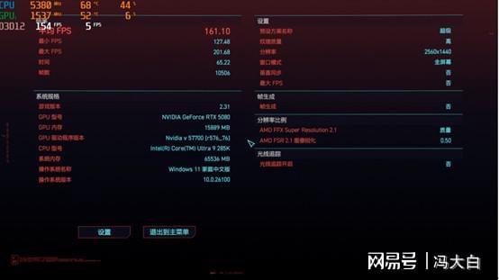 在《赛博朋克2077》的“超级画质”+2K分辨率测试中,显卡负载占据绝对主导,CPU的影响相对较小。AMD锐龙与英特尔酷睿在这里几乎持平,分别为162.7 FPS 和161.1 FPS,仅有约1%的差距,属正常波动范围。在这种极度GPU受限的场景中,锐龙7 9700X依然能稳定保持与更高价旗舰同级的帧率输出,说明Zen 5架构的任务分配与渲染线程调度足够高效,既不会成为显卡的瓶颈,也能在后台保持低延迟。